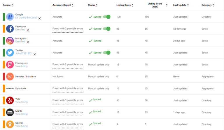 Accurate business listings help search engines and consumers find local businesses online. Listing Sync gives you one place to create and sustain accurate business listings across an established network of over 70 listing sites. With Listing Sync you can:
